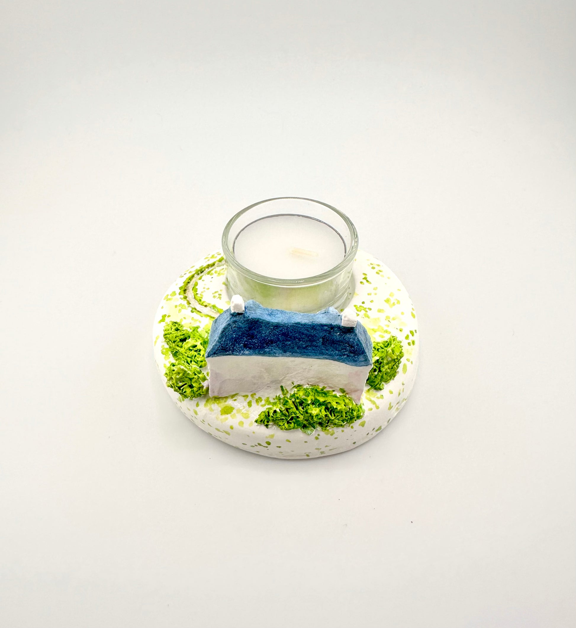 A traditional Scottish white house tealight holder including glass votive candle holder and tealight. Sculpted by Becky Stout to capture the beautiful traditional Scottish white house with its iconic dormer windows.